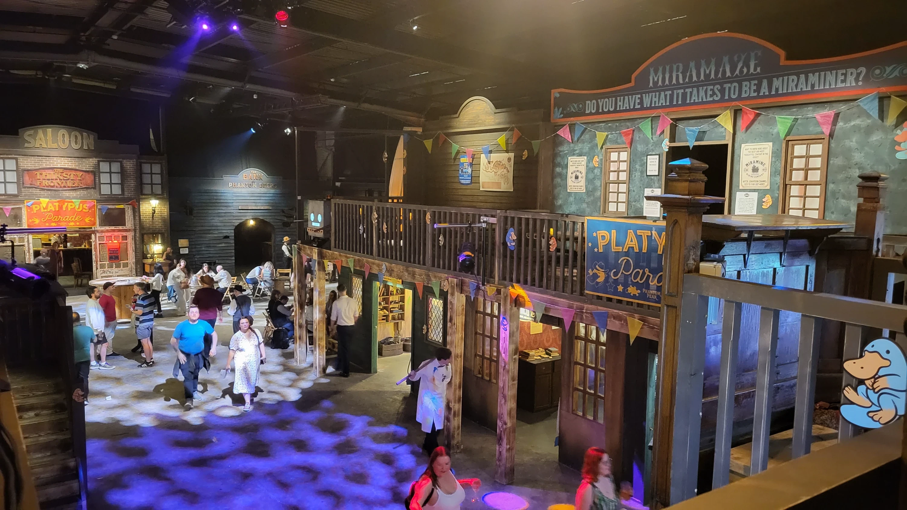 Notre deuxième soir à Londres, en tant que participantes au Sommet WXO, on a été invitées à participer à l'expérience Phantom Peak. Phantom Peak accueillait le Sommet, donc on était déjà un peu familiers avec l'espace et on se demandait ce qu'il en était des ornithorynques, car il y en avait partout. C'était la mascotte de Phantom Peak, et pourtant il n'y avait aucune autre référence à l'Australie (tout le monde sait que les ornithorynques sont endémiques en Australie). L'expérience a commencé avec environ une demi-heure pendant laquelle les participants ont pu se mêler aux personnages dans la salle principale. C'était une occasion amusante de poser des questions du genre "C'est quoi l'histoire avec les ornithorynques ?" Réponse : "Ils étaient là avant." Les acteurs étaient très bons, très convaincants dans leurs personnages, et ils semblaient tous bien connaître et comprendre les histoires, les règles, les personnages et les particularités de ce monde étrange et fictif appelé Phantom Peak. Après avoir mangé un repas assez moyen (peut-être la seule chose que j'ai trouvée vraiment à améliorer), que l'on peut commander aux bornes automatiques, Frances et moi avons décidé de se lancer sur l'un des "chemins". Après avoir rempli un court questionnaire sur un site web, on nous a suggéré de suivre le chemin "Vanishing Act". En suivant indice après indice, tâche après tâche donnée via notre smartphone (il semble impossible de faire cette expérience sans smartphone), on a été amenées à visiter différents espaces à travers Phantom Peak et parler avec plusieurs personnages. Mon moment préféré, c'était à la fin, quand j'ai dû annoncer à un jeune homme plutôt attachant et naïf que la femme avec qui il avait communiqué et dont il était amoureux était en fait une intelligence artificielle. Après lui avoir annoncé cette mauvaise nouvelle, je l'ai réconforté. Son émotion semblait très réelle et ça m'a vraiment touché. Malgré notre fatigue, Frances et moi avons toutes les deux vraiment apprécié l'expérience pour la qualité du jeu des acteurs, l'ingéniosité du jeu, et la fantaisie des décors et accessoires.