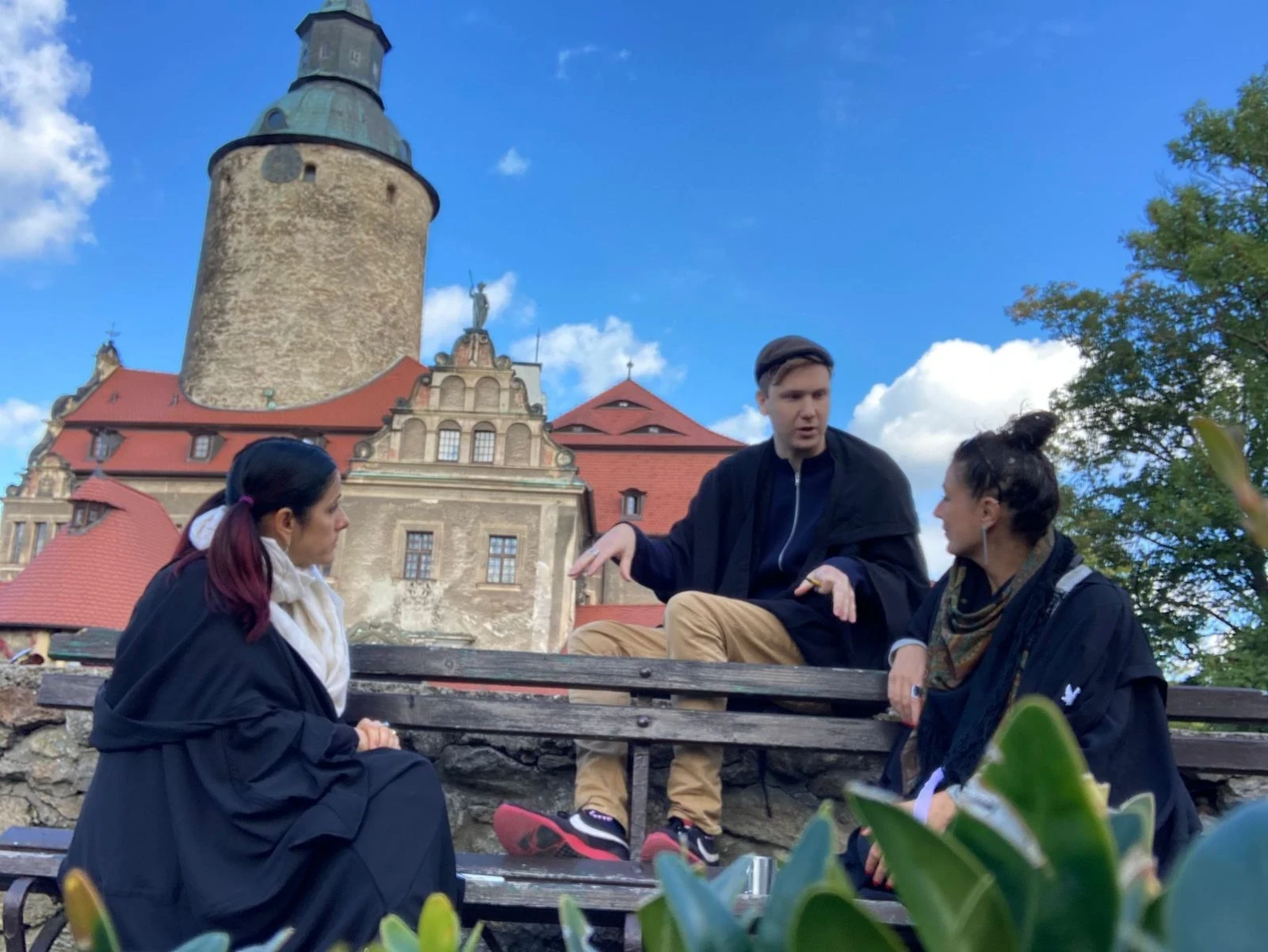 Pour ma contribution, je me suis alliée à @Eliza Calmat, une actrice et créatrice d’expériences immersives en France, et @Gunnar de Jong, un acteur-créateur basé à Amsterdam, pour offrir un atelier sur le théâtre immersif. Nous avons appelé notre atelier “Outils Immersifs : de l’Intérieur à l’Extérieur, initiation au théâtre immersif.”